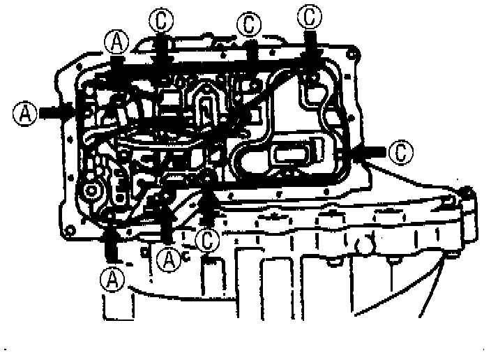 NOTICE: Insure that sealer will not be forced into the oil passages when the transaxle case is installed.