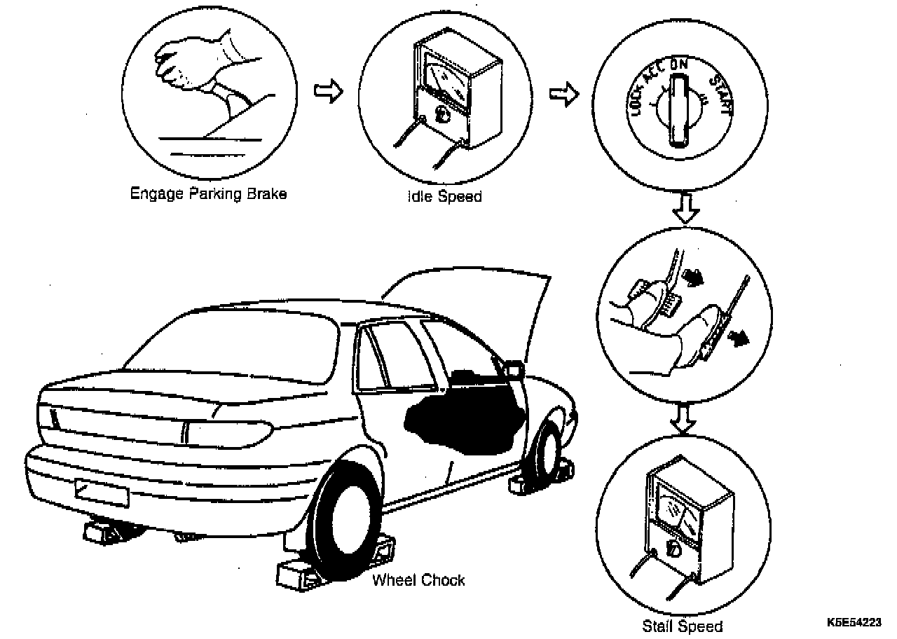 4. Firmly depress the foot brake with the left foot and gradually depress the accelerator pedal fully with the right foot.