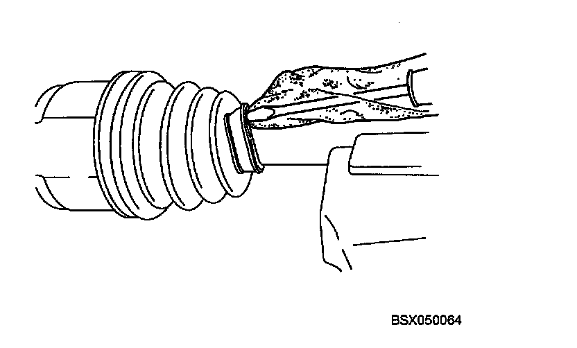 1. Pry up the locking clip of the transaxle-side boot retention band with a screwdriver.