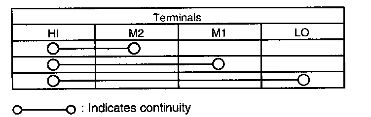 Disconnect the resistor assembly connectors. Check continuity between terminals.