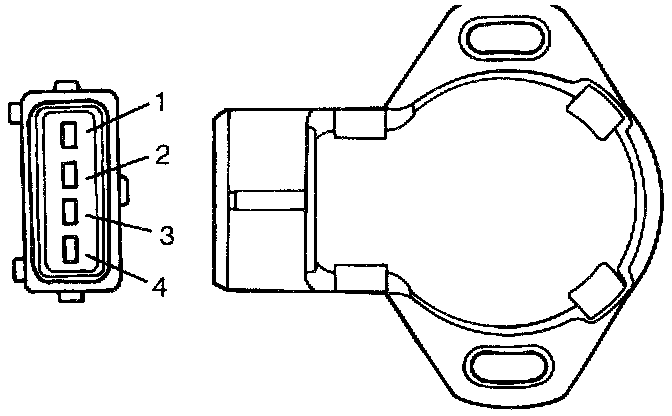 3. Check for continuity between throttle position terminals 1 and 2 using an ohmmeter.