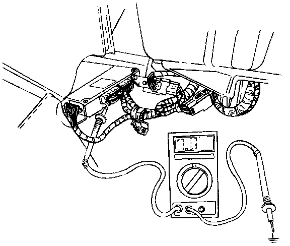 Verify the PCM terminal voltages through the rear of the connectors. The PCM is located under the dash center, on the floor, against the engine compartment bulkhead. The connectors face the passenger side compartment and are covered by the carpet. The carpet is held in place with Velcro.