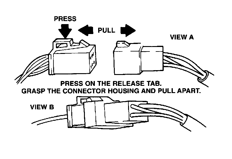 ^ Grasp the connector housing and pull until the locking tab is on the ramp.
