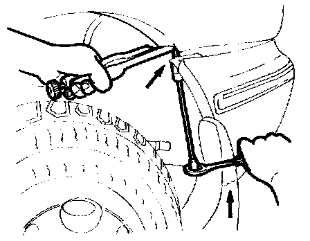 3. Remove the installation screw (upper) and installation bolt (lower) on side of bumper at each rear wheelwell.