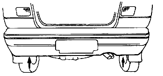 4. Remove the installation nuts located on underside of bumper (arrows).