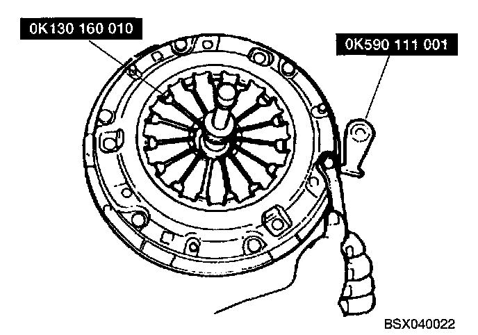 24. Loosen each bolt one turn at a time, in a crisscross pattern, until spring tension is released then remove clutch cover and disc.