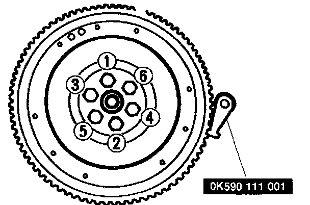 26. Hold flywheel with SST (Ring gear brake) or equivalent.