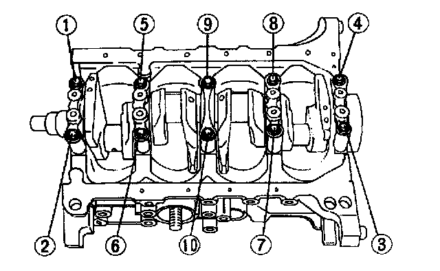 58. Loosen main bearing caps in two or three steps following order shown in figure.