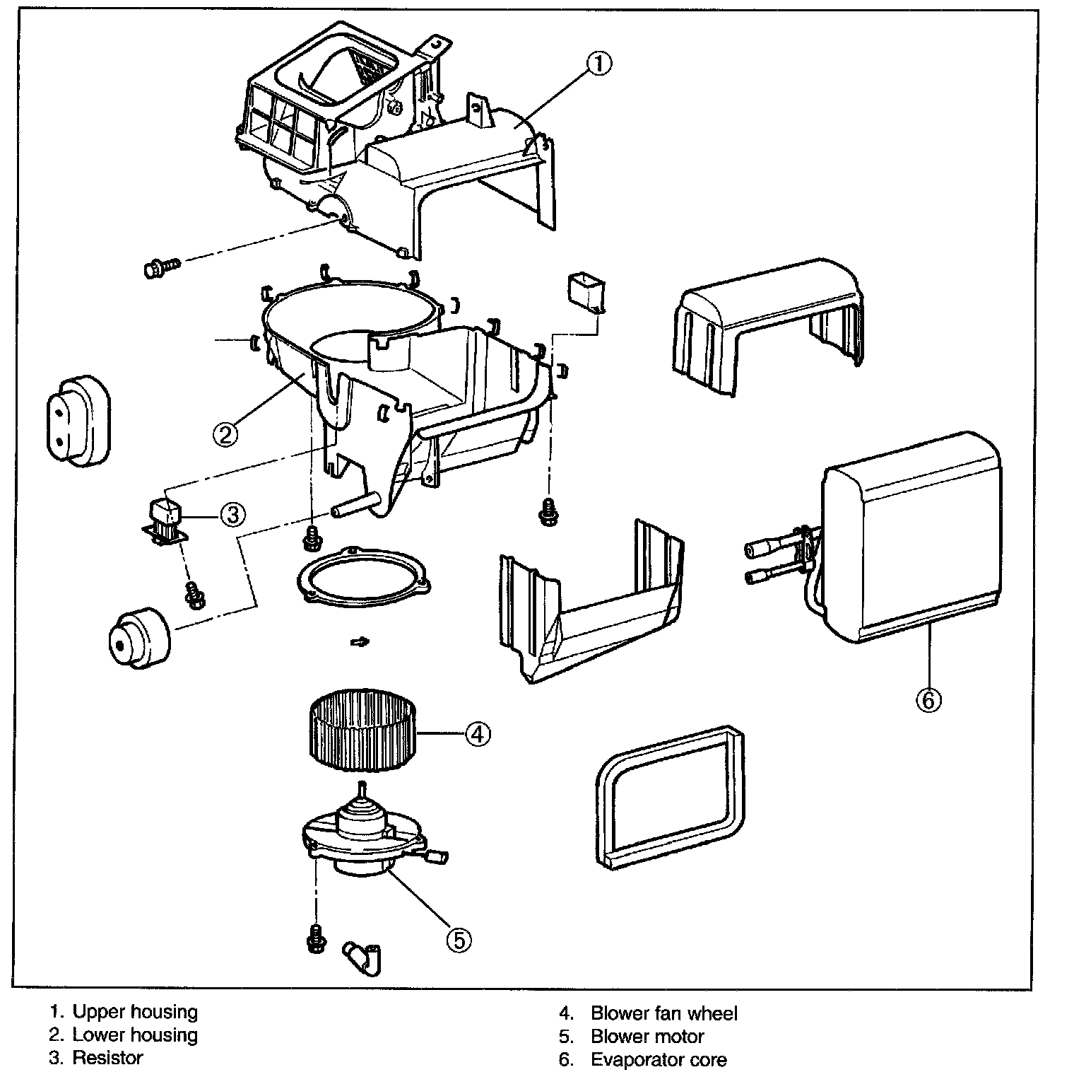 Disassemble and assemble the blower/evaporator unit as shown in the figure.