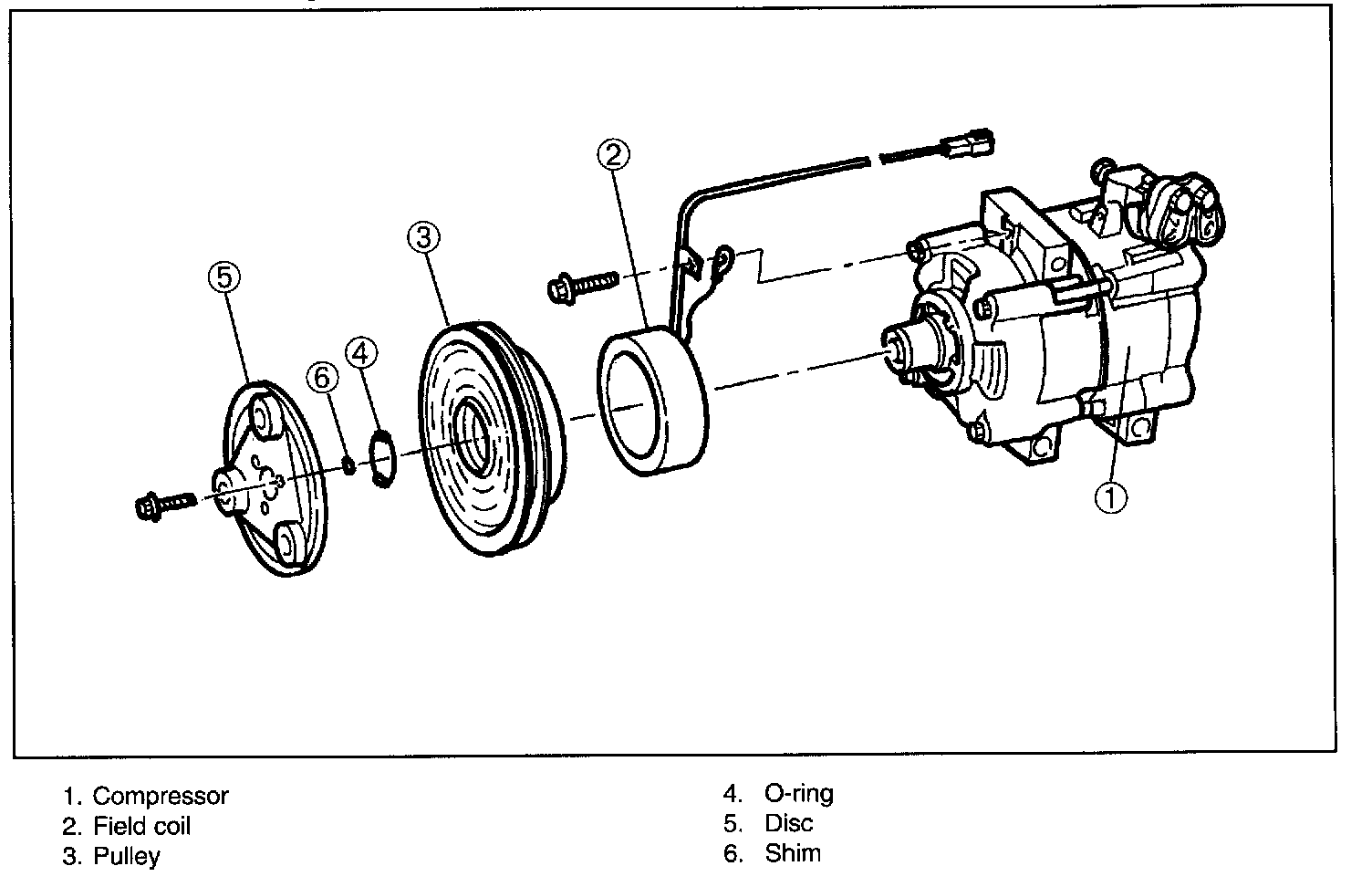 Disassemble the A/C compressor clutch as shown in the figure.