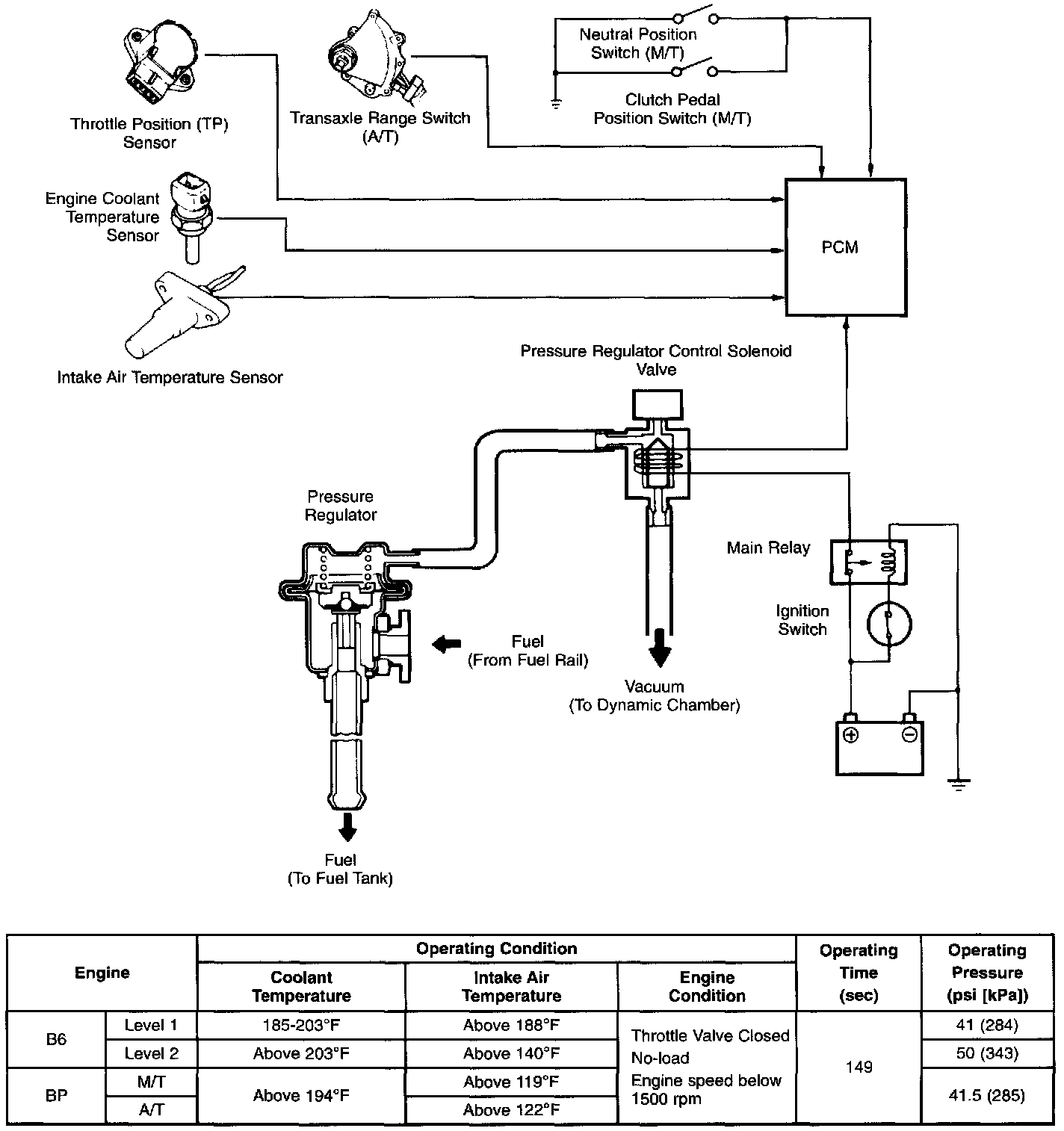 To prevent percolation of the fuel during hot restart idle, vacuum to the pressure regulator is momentarily cut, and the fuel injection pressure is increased to slightly more than 41.2 psi (284 kpa).