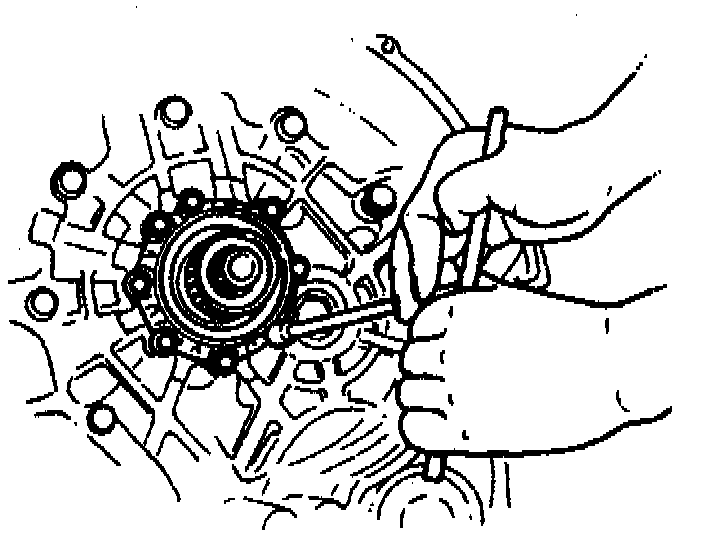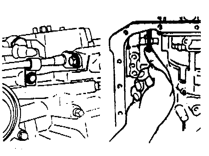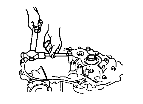 NOTICE: Remove the oil pan before turning the transaxle over. This will ensure that any foreign material remains in the pan.