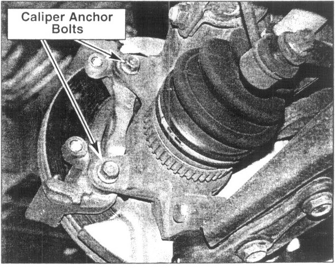 5. Remove two bolts from caliper anchor and remove anchor.