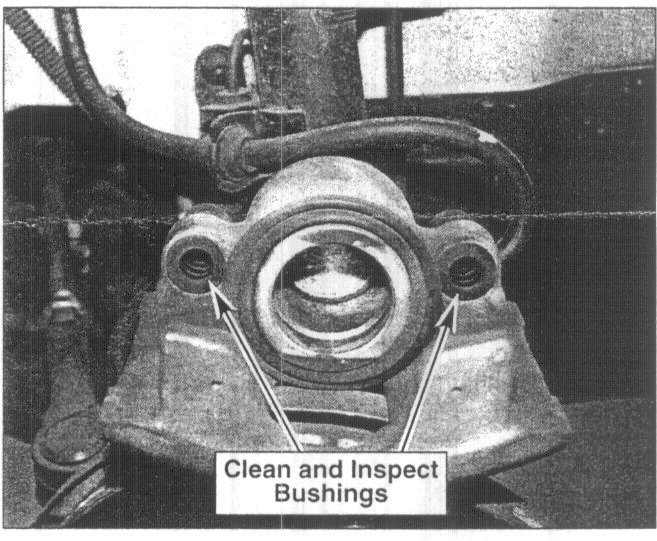 10. Check caliper slide pin bushings for damage and clean or replace as necessary.