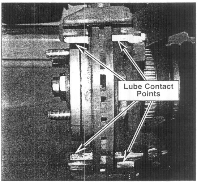 11. Apply a very thin coat of high-pressure caliper grease to caliper contact points on anchor.