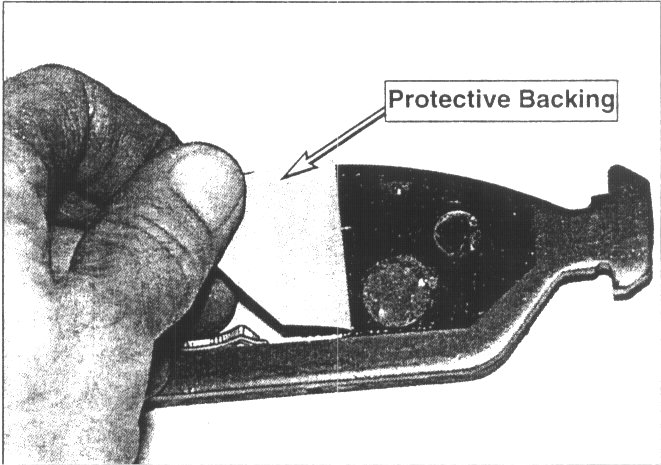 Make certain to remove protective backing from anti-spread material on outboard pad.