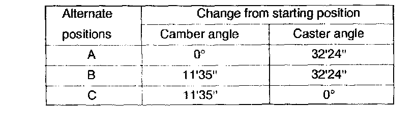 6. Lower vehicle and recheck caster/camber. Readjust if necessary.