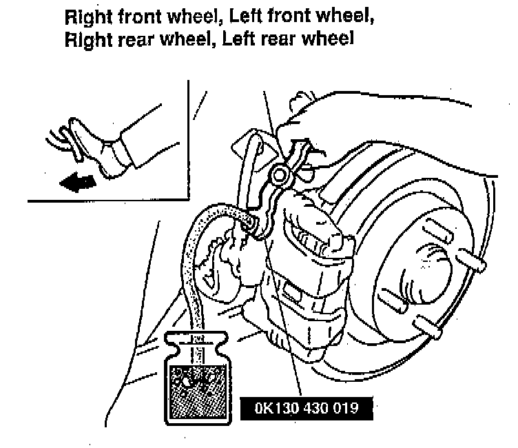 5. Have a second person loosen the bleeder screw, drain out fluid, and retighten screw with Special Service Tool (SST) 0K130 430 019 or equivalent.
