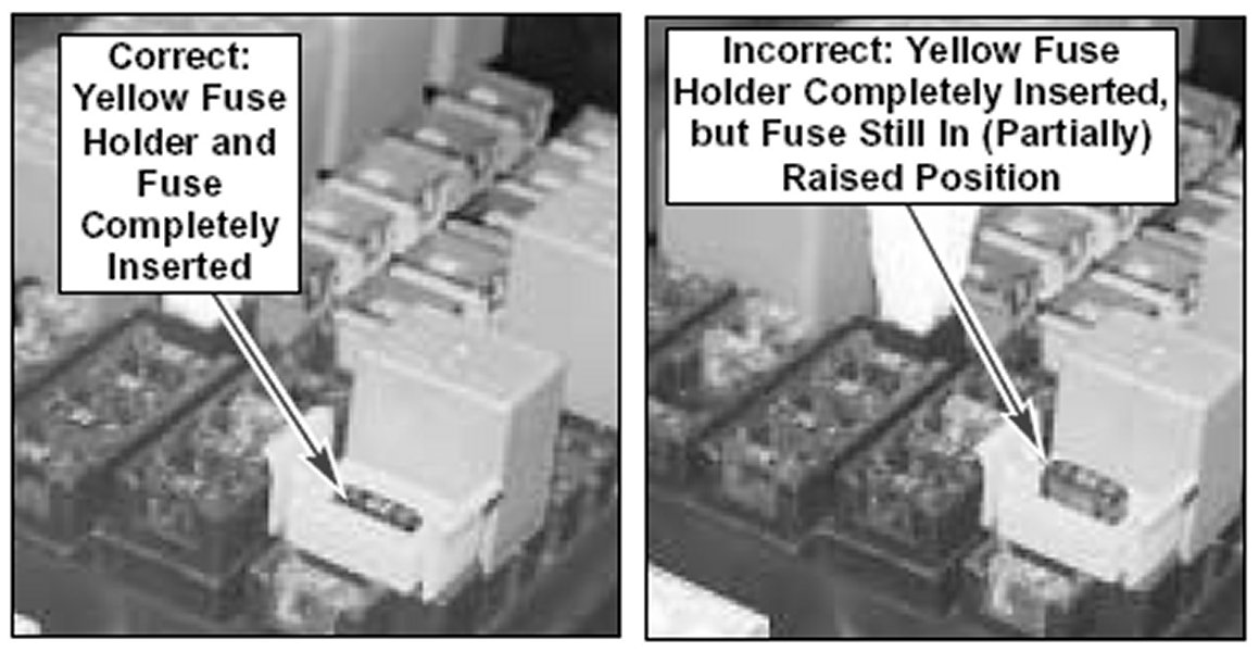 Whenever you re-install the memory fuse, make sure it is fully inserted. Otherwise, even with the yellow fuse holder itself depressed all the way, there is a possibility of poor and intermittent contact unless the fuse itself is also pressed down.