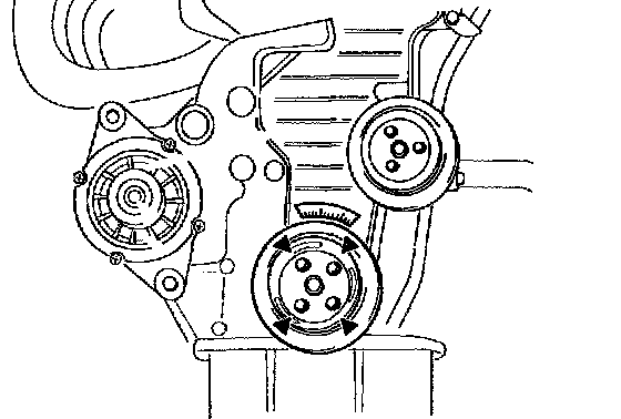 9. Turn crankshaft so that timing mark on timing belt pulley is aligned with timing mark on engine.