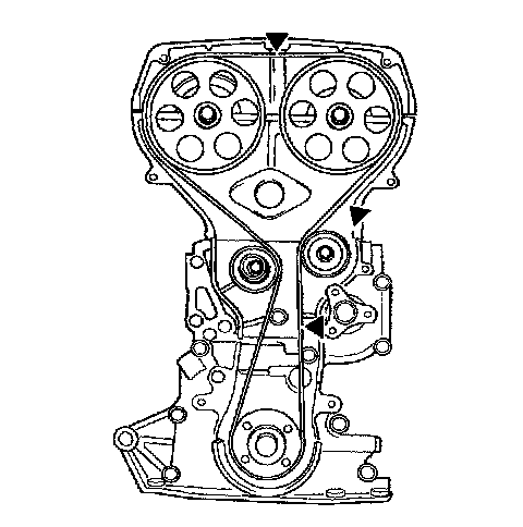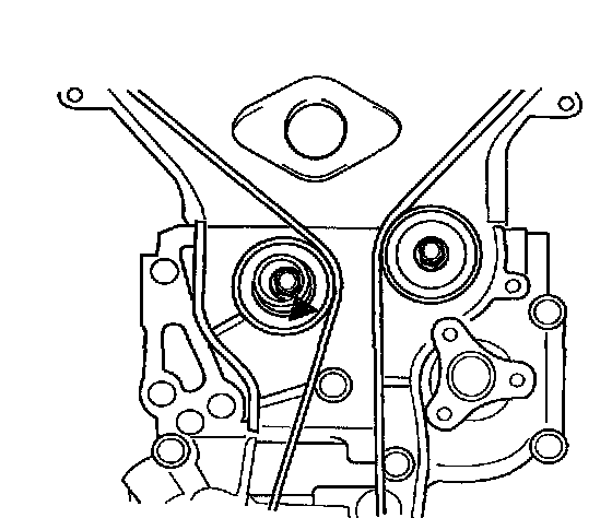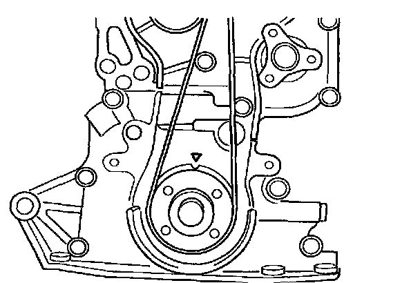 9. Rotate crankshaft two full revolutions (clockwise only) and align timing mark on timing belt pulley with timing mark on engine block.
