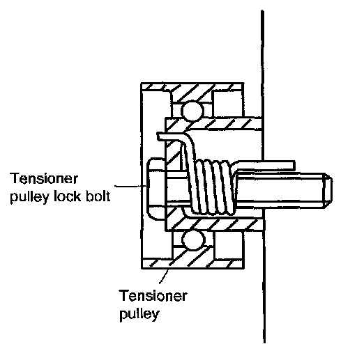 8. Tighten tensioner pulley lock bolt to specified torque.