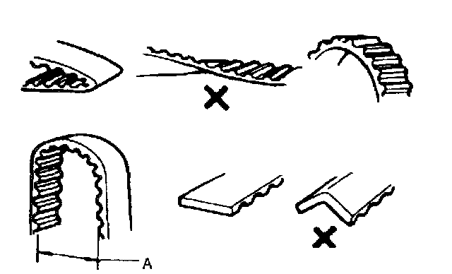 3. Bend timing belt into a "U" shape as shown in figure. Distance A must be at least 1.0 in (25 mm)