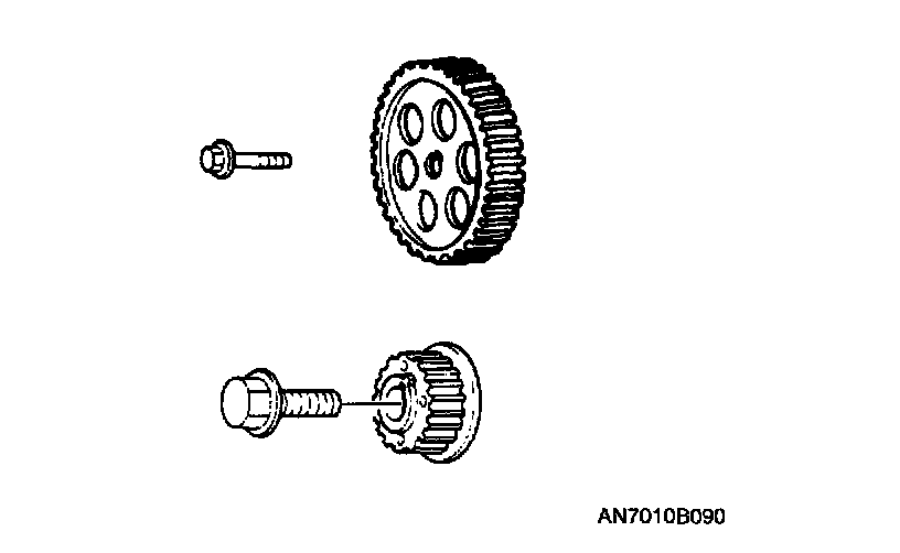 5. Inspect camshaft pulleys and timing belt pulley for broken teeth or damage.