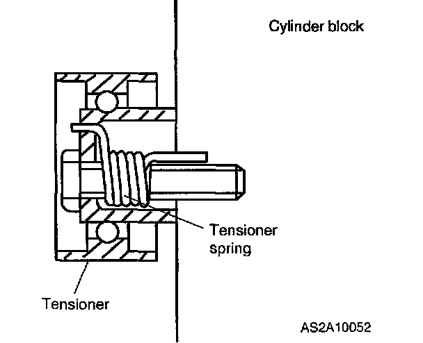 NOTICE: Replace tensioner spring whenever timing belt is replaced.