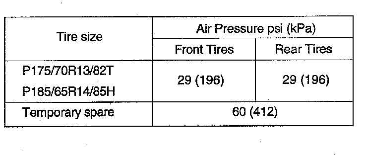 AIR PRESSURECheck air pressure of all tires, including the spare tire, with an air pressure gauge. If necessary, adjust air pressure.