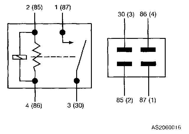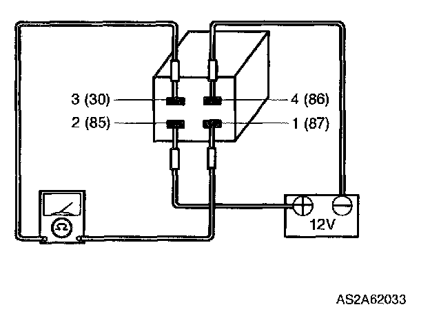 1. Disconnect A/C relay connector.2. Check continuity between terminals.