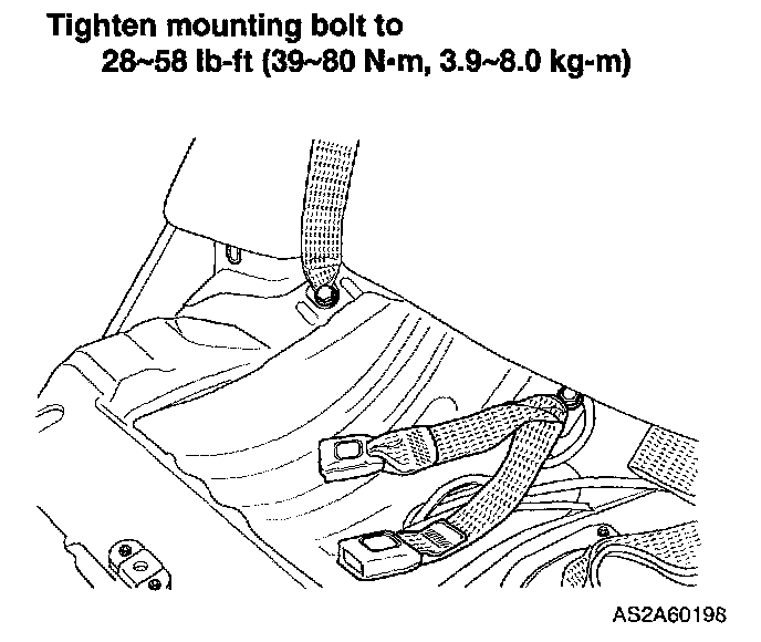 5. Install one bolt through lap belt mounting bracket.