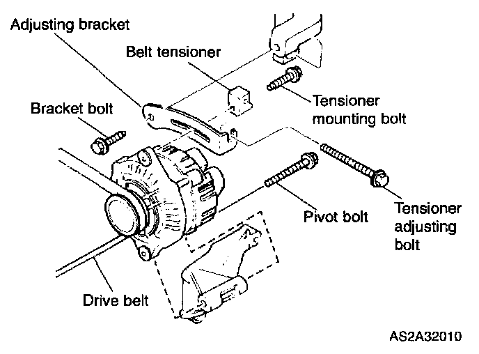 6. Loosen pivot bolt and tensioner mounting bolt. Do not remove.