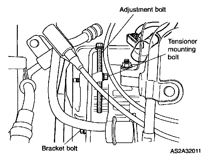 5. Install tensioner mounting bolt (leave loose).