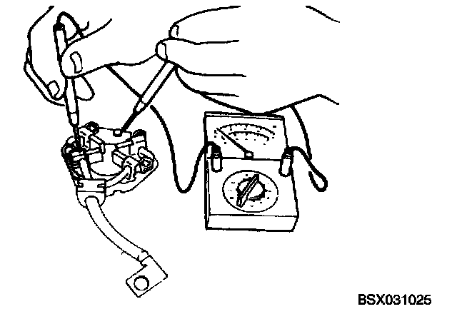 1. Check continuity between each insulated brush and plate with ohmmeter. Replace brush holder if there is continuity.