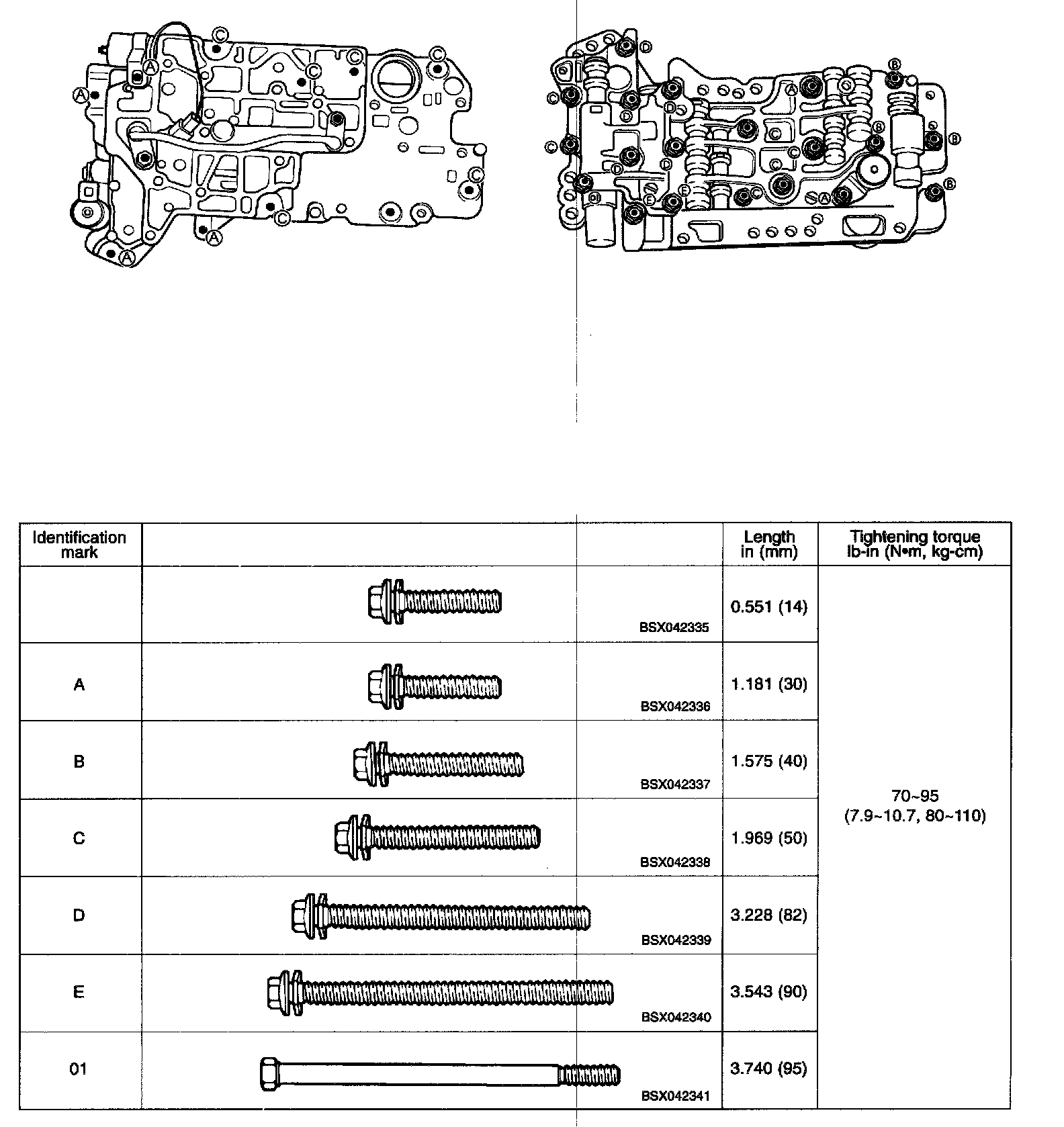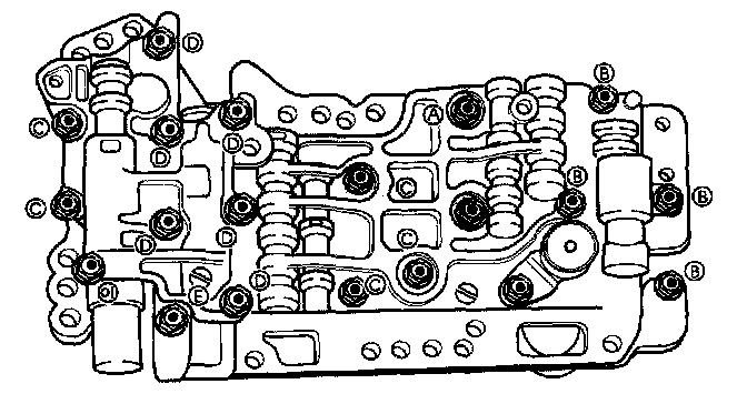 15. Loosely tighten lower control valve body bolts. (Refer to Bolt installation positions and external parts locations diagram)