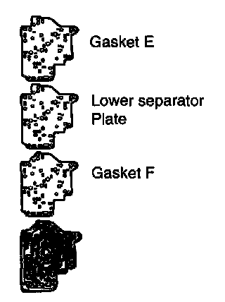 3. Set new gasket F, lower separator plate, and new gasket E onto lower valve body.