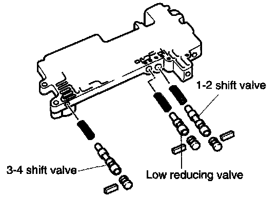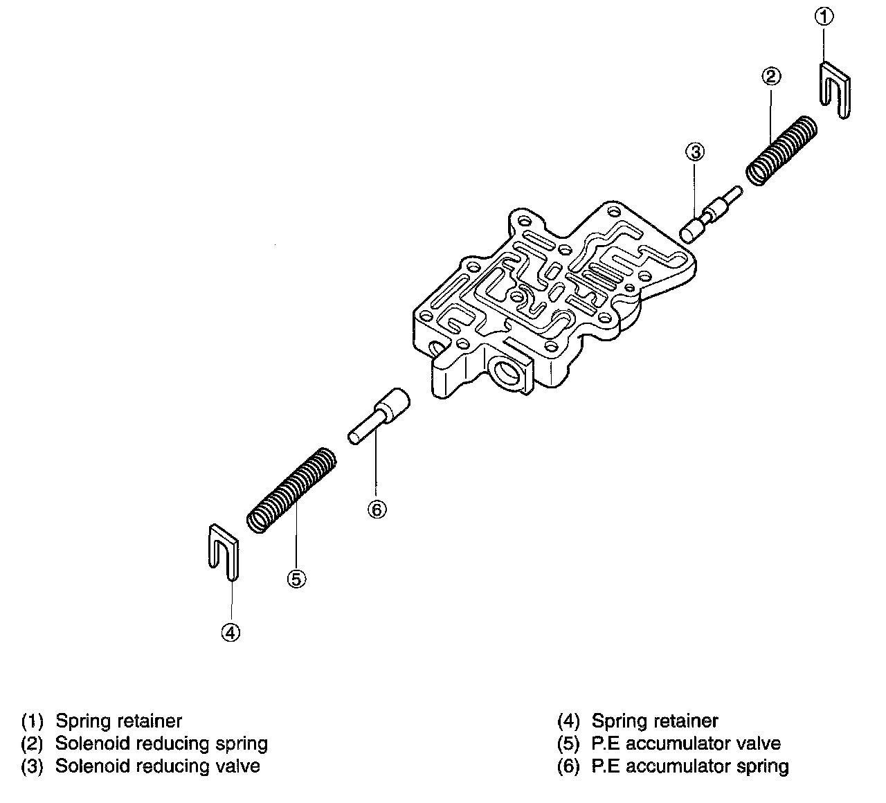 1. Insert solenoid reducing valve and solenoid reducing spring and secure them with spring retainer.