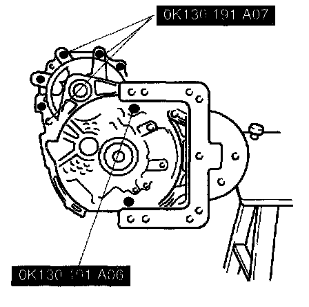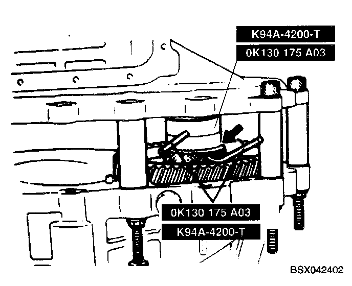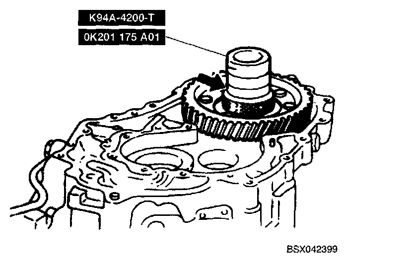 2. Set transaxle case on a stand and install SST (OK1 30 191 A07/K94A-4200-T).