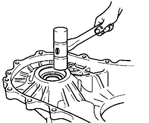 1. Remove side bearing outer race and adjustment shims from transaxle case.