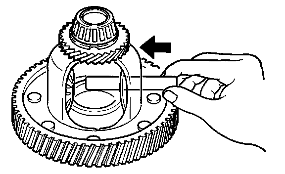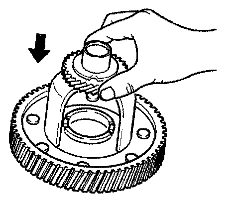 NOTICE: Be certain that both side gears are centered in their respective driveshaft holes. If not, remove both side gears and re-install them.