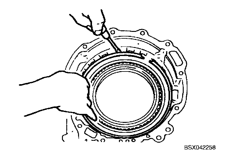 b. If clearance is not within specification, adjust it by selecting a proper snap ring.