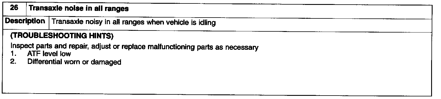 Transaxle Noise In All Ranges