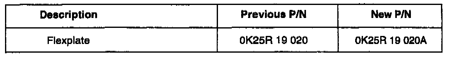 This bulletin provides information related to a change to the Sephia automatic transmission flexplate. The material thickness of the new flexplate has been increased from 2.0 mm to 3.2 mm effective 5/17/99 production (2000MY).