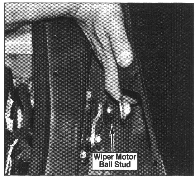 8. Install new wiper link onto RH wiper and wiper motor ball studs using hand pressure until it snaps in place.