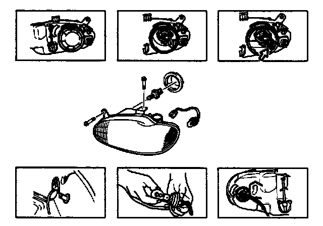 1. With bulb installed in socket, align grooves of socket with bosses on headlight and combination light assembly and insert socket into headlight and combination light assembly.