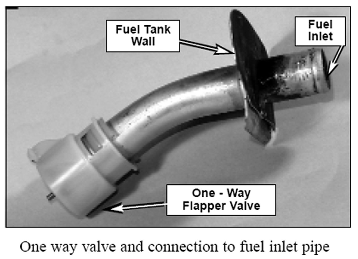 Note: If fuel spits back from the filler neck after refueling, it may be that the one way flapper valve inside the fuel tank is not closing properly.