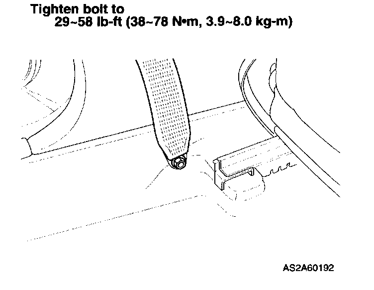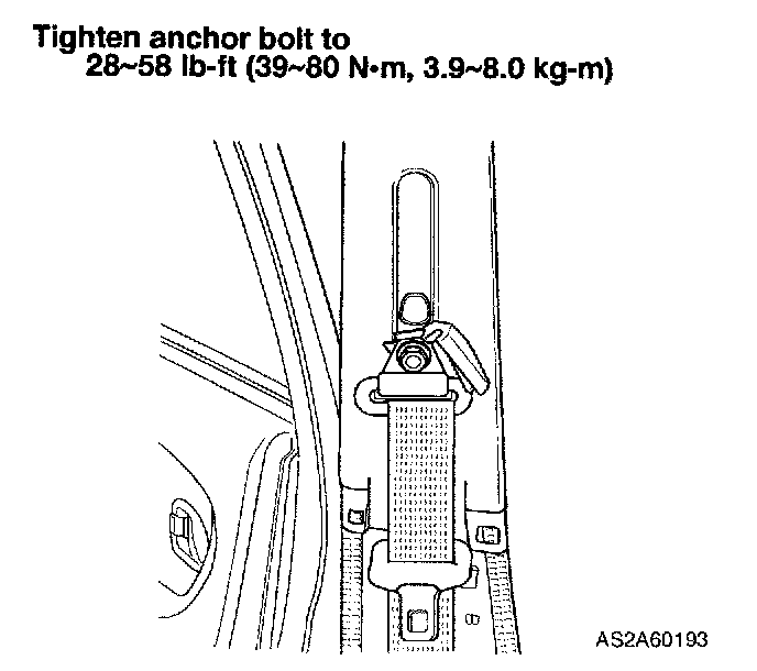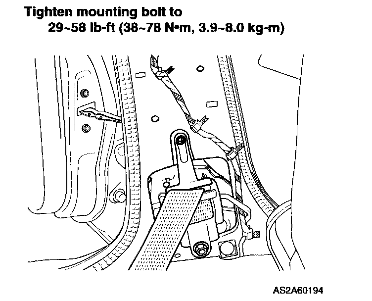 WARNING: EXERCISE CARE TO INSTALL BELT SO THERE ARE NO TWISTS IN IT. A TWISTED BELT MAY BE HARMFUL TO A PASSENGER IN A SERIOUS ACCIDENT. A TWISTED BELT ALTERS DISTRIBUTION OF FORCE RESULTING FROM SUDDEN DECELERATION.