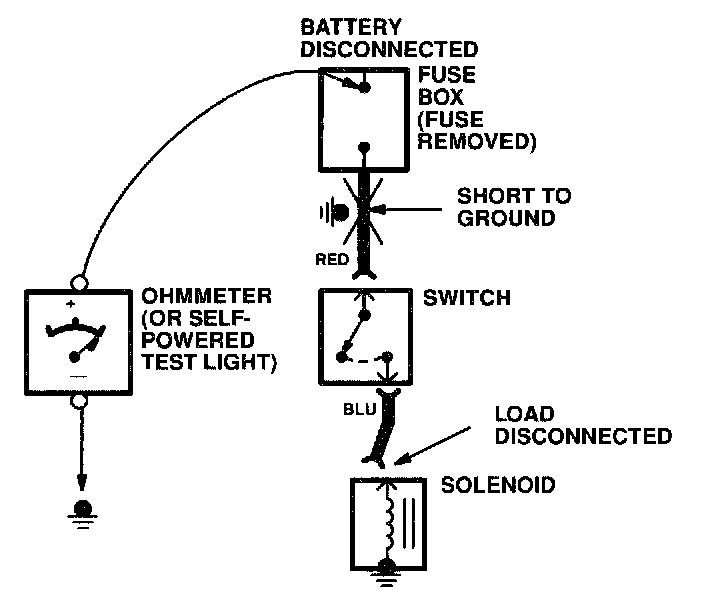 5. If the self-powered test light blinks or the ohmmeter needle moves, there is a short to ground in the wiring near that point.