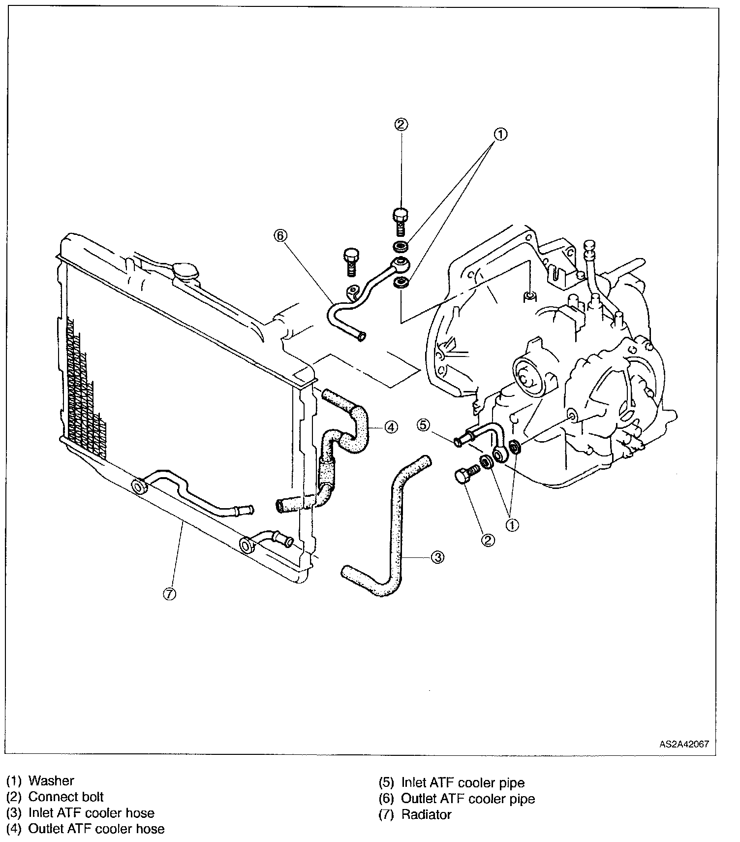 3. Slide ATF inlet and outlet hose onto AFT cooler pipe until it is fully seated against the ridge.